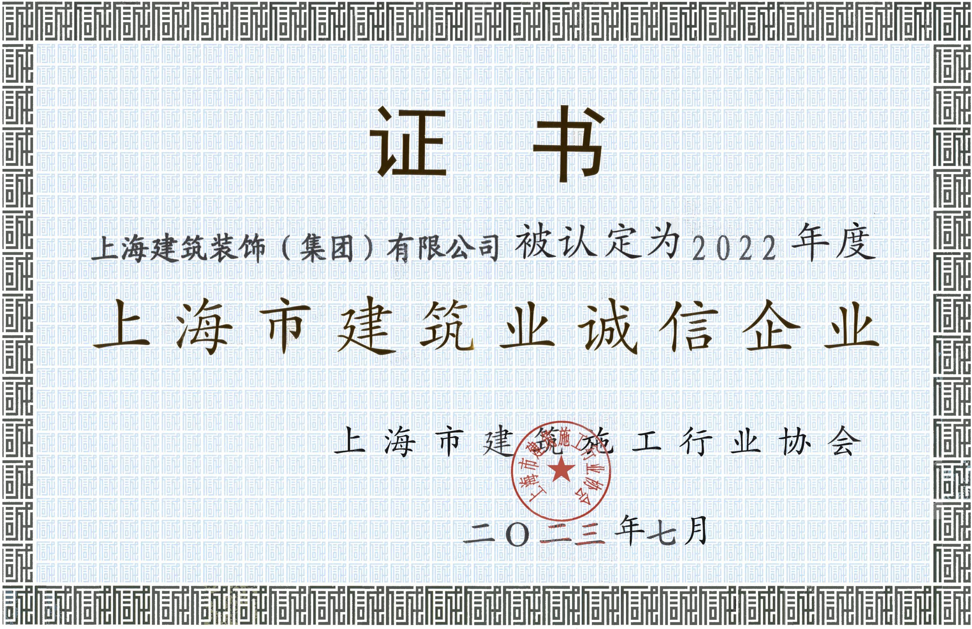 2022年度上海(hǎi)市建筑业诚信企业