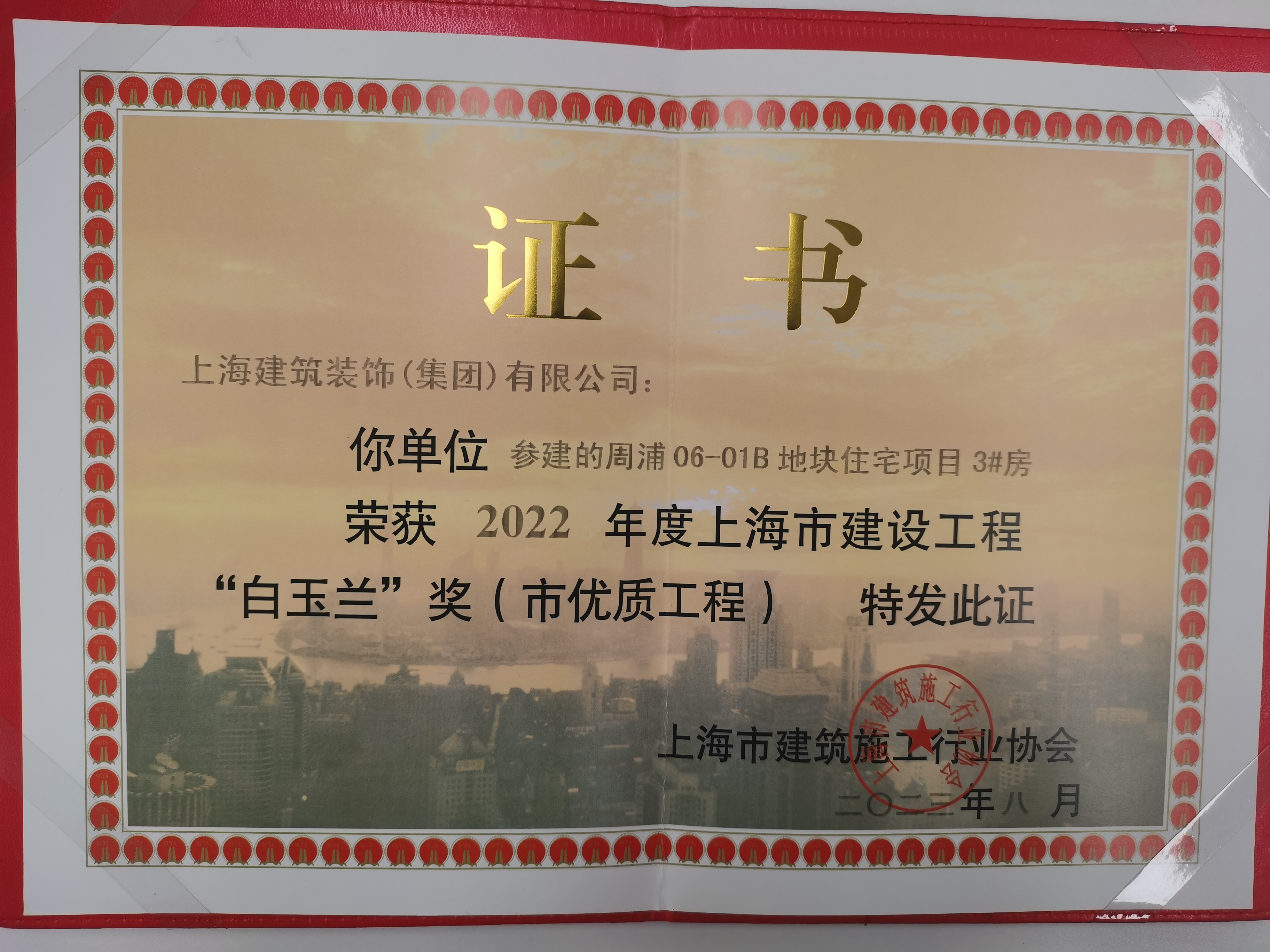 2022年度上海(hǎi)市建设工程“白玉兰”奖(周浦06-01亮章B地块住宅项目3#房)