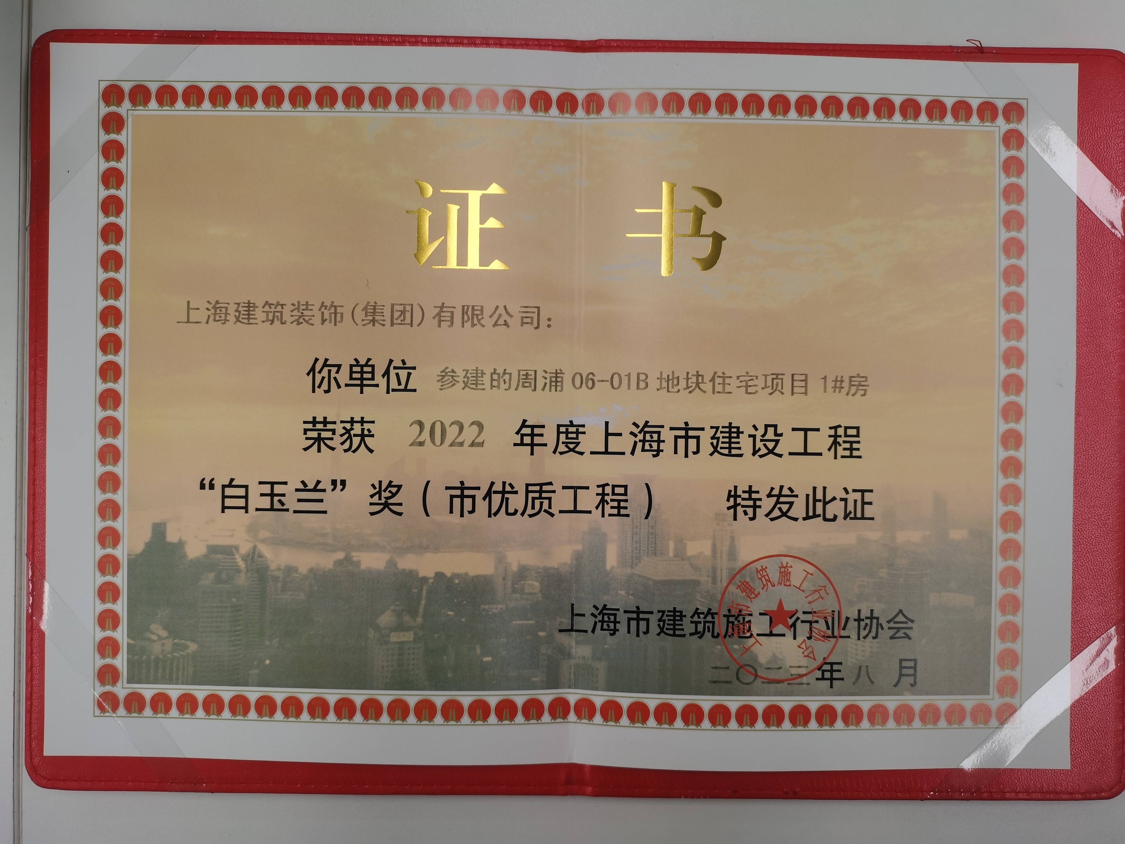 2022年度“白玉兰”奖奖杯(周浦06-01B地块住宅项目1#房)